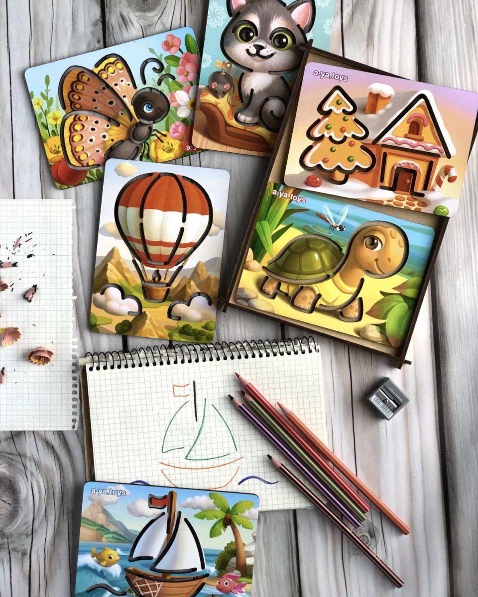 Бренд: Ubee Упаковка: Коробка Колір: Різнобарв'я Вага з упаковкою: 210 г Габарити в упаковці: 18 x 26 x 2 см Країна виробник: Україна Матеріал: Дерево Комплектація: 6 трафаретів