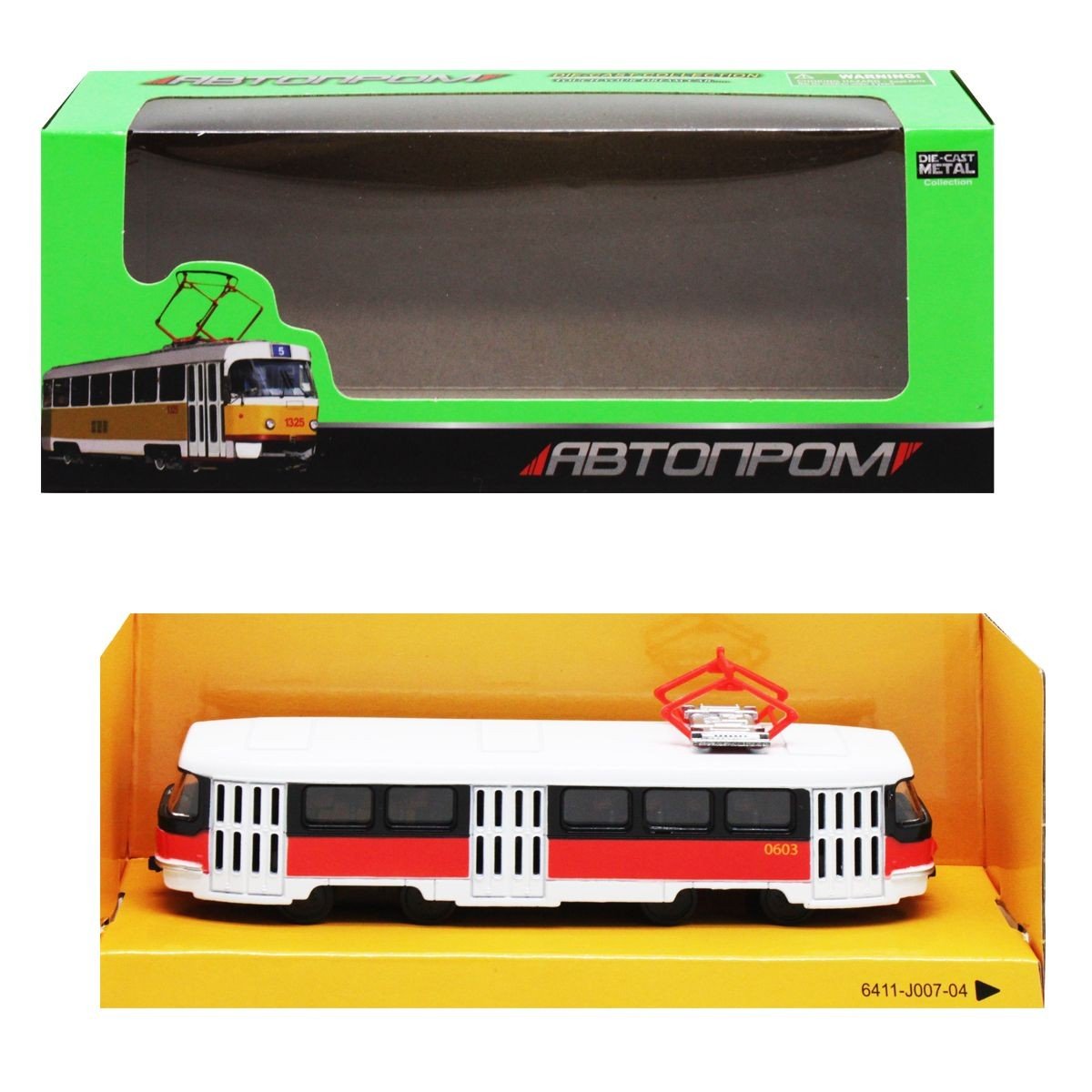 Трамвай інерційний із серії "Автопром". Виконаний з якісних та безпечних матеріалів, висока деталізація. Довжина трамваю: 15 см.