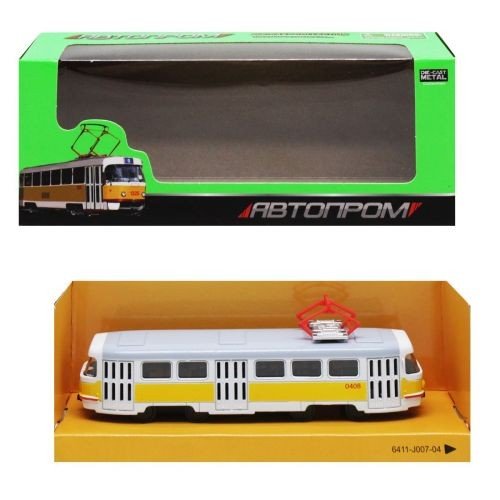 Трамвай інерційний із серії "Автопром". Виконаний з якісних та безпечних матеріалів, висока деталізація. Довжина трамваю: 15 см.