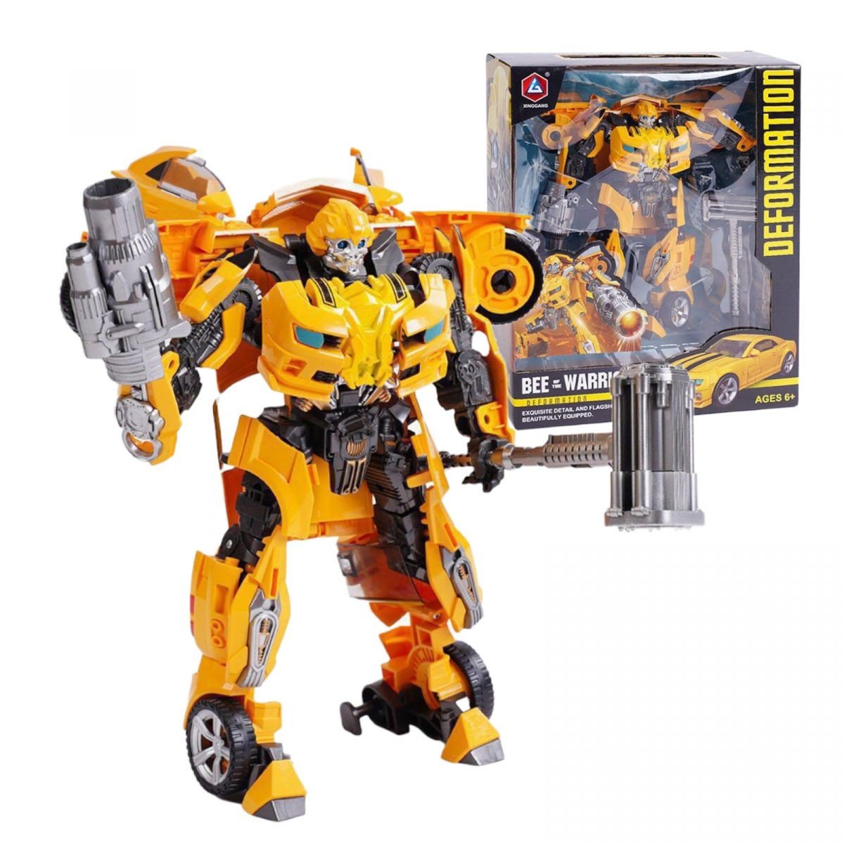 Бренд: XINGGANG Упаковка: Коробка Колір: Жовтий Вага з упаковкою: 888 г Габарити в упаковці: 12 x 31.2 x 38.5 см Матеріал: Пластик Комплектація: трансформер