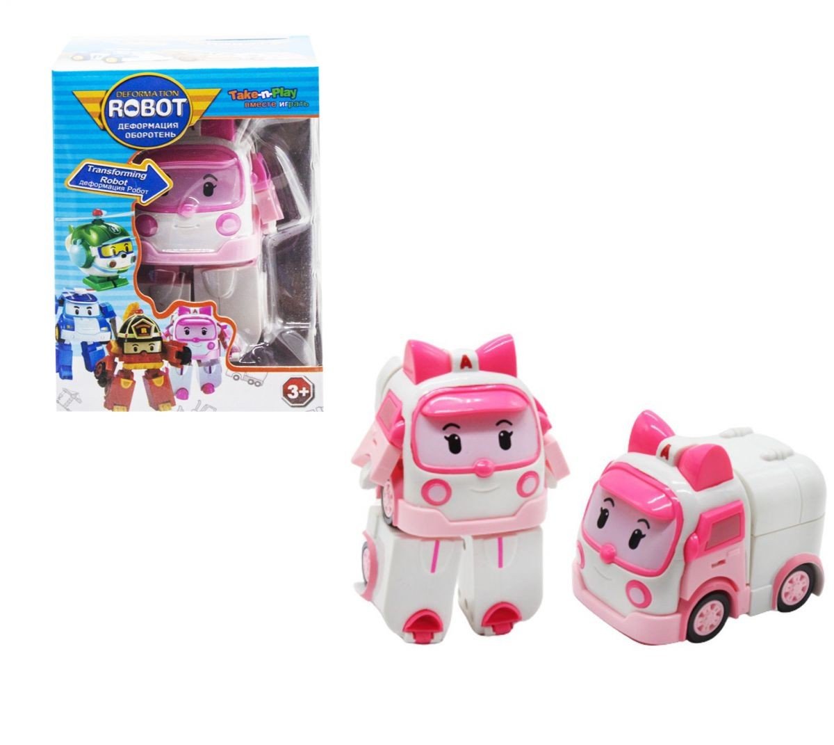 Трансформер Amber. Має 2 форми: робот і машина швидкої допомоги. Інструкція як правильно складати трансформер - розміщена на упаковці. 4 кроки трансформування.