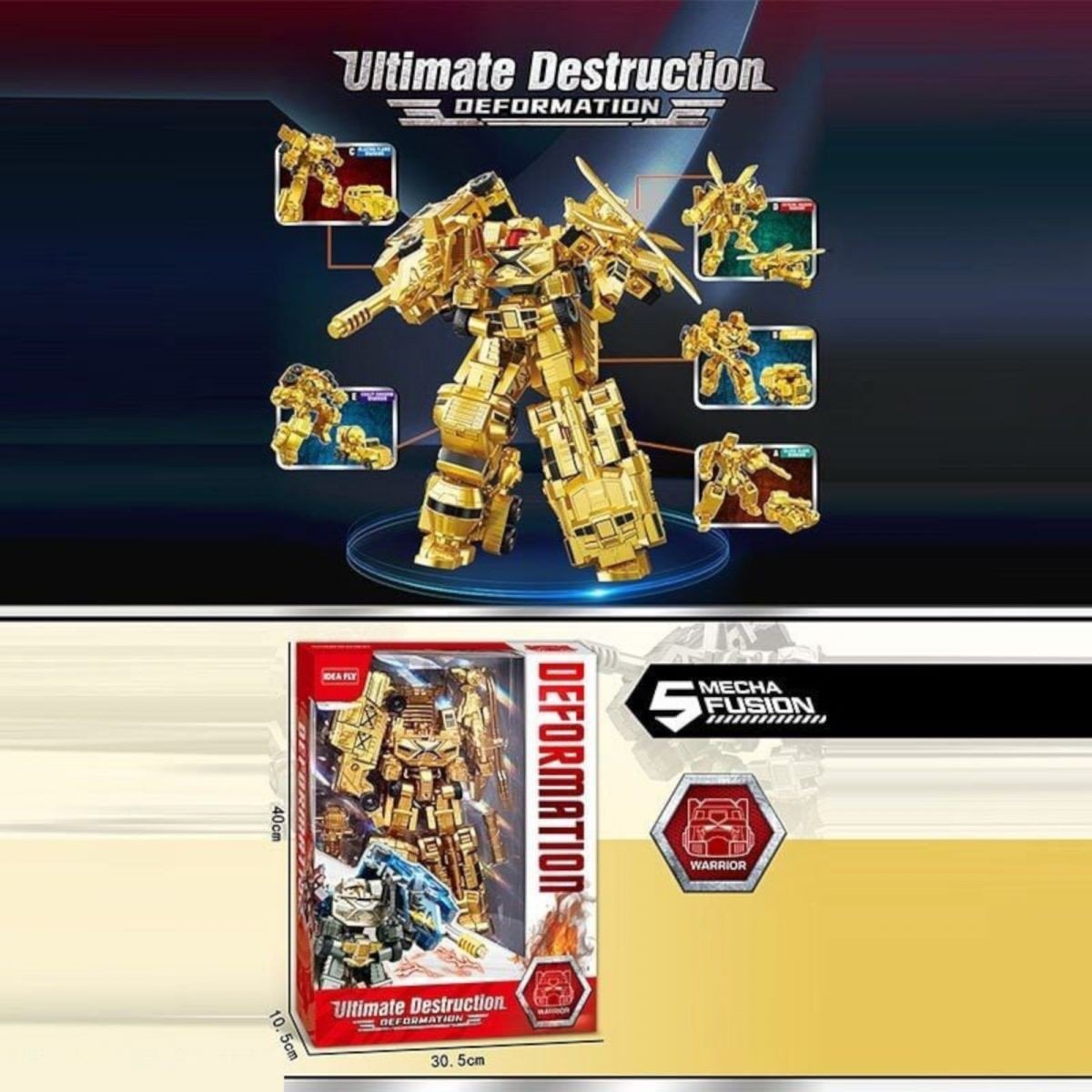 Бренд: Idea-Fly Упаковка: Коробка Колір: Різнобарв'я Вага з упаковкою: 674 г Габарити в упаковці: 10.7 x 30.6 x 39.7 см Країна виробник: Китай Матеріал: Пластик Комплектація: трансформер