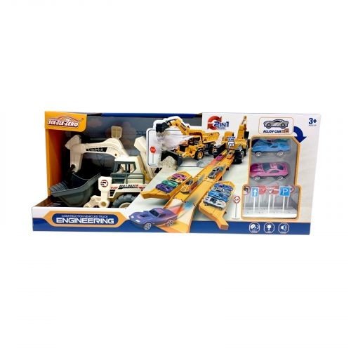 Трек 2 металопластикові машинки, спецтехніка, рухливий ківш, звуки, мелодія, підсвічування, в коробц