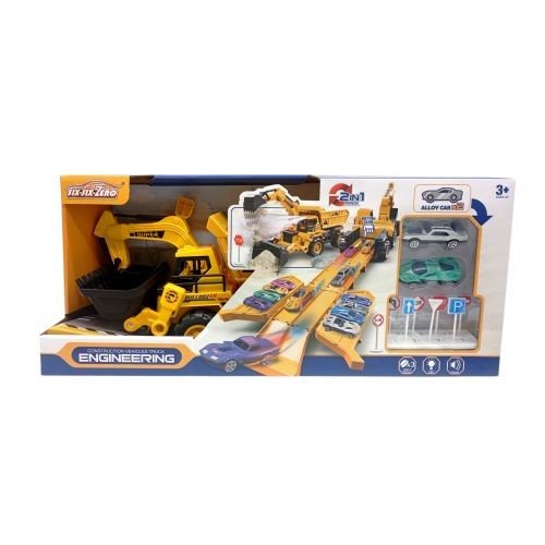 Трек 2 металопластикові машинки, спецтехніка, рухливий ківш, звуки, мелодія, підсвічування, в коробц