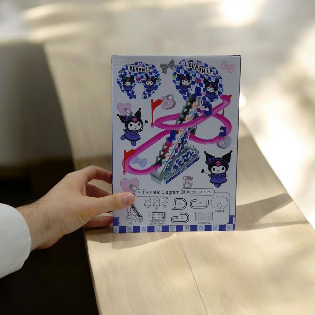 Незвичайна іграшка складається з: сходи, гірки, 3 фігурки Куромі і додаткових аксесуарів-декорацій. Працює від 2-х батарейок АА (немає у комлекті). Після запуску і установки фігурок на верх, вони почнуть спускатися по зигзагоподібній гірці, а потім, самостійно, залазити по сходах. І так по колу. Зі світловими ефектами та музикою.