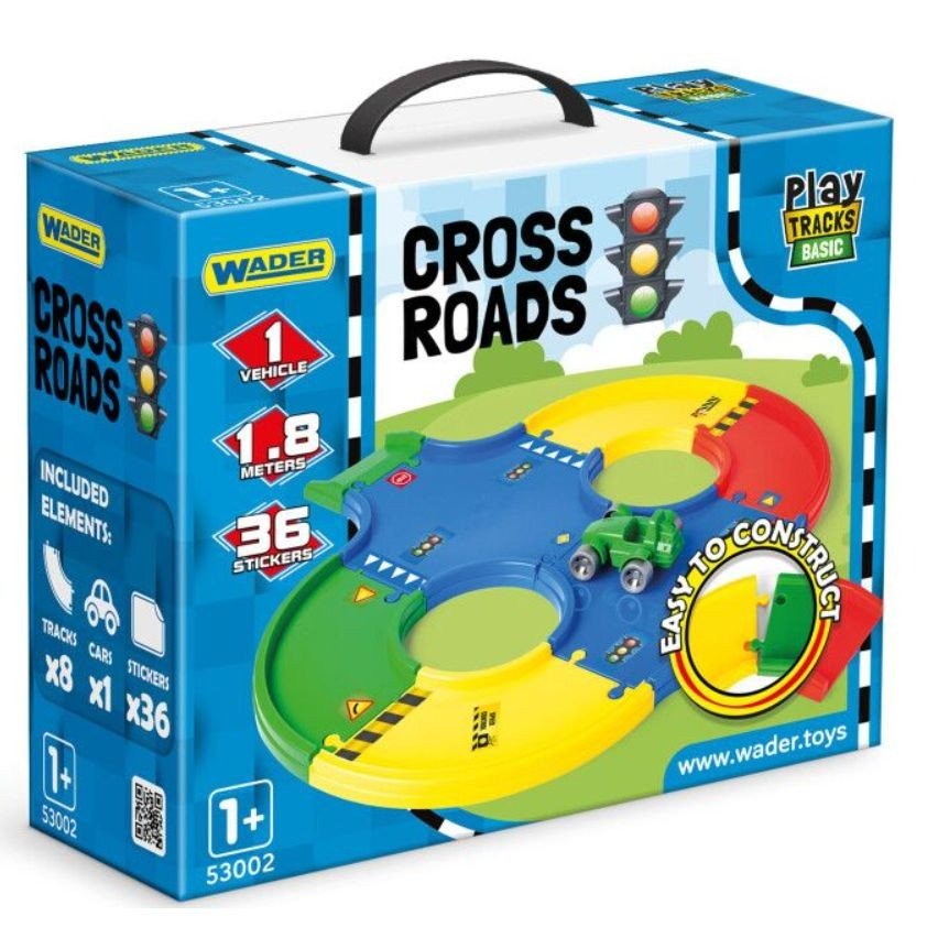 Дитячий пластиковий трек з великими деталями (8 штук) ідеально підходить для маленьких дітей. У комплекті йде машинка, яка легко ковзає трасою, забезпечуючи захопливий ігровий досвід. У комплекті також є 36 стікерів для декорування треку та машинки. Деталі сумісні з деталями інших треків цієї серії.