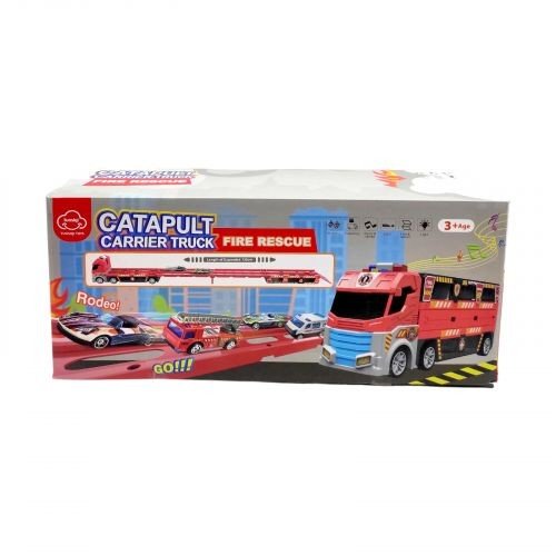 Трейлер-трек “Пожежна машина”, розмір 38х10.5х15 см, довжина треку 135 см, механічний запусач, підсв