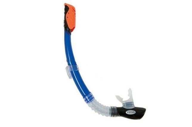 Nрубка для плавання "Intex. Не має клапанів - для спрощення навчального процесу, має оригінальний загубник, який дозволяє використовувати трубку, як на ліву, так і на праву сторону, кліпсу - фіксатор (можливість регулювання по висоті, швидкознімна, поворотна). Виготовлена з пластика і силікону «Latex Free» (гіпоалергенні матеріали, які захищають користувачів від подразнень). Для дітей від 8 років.