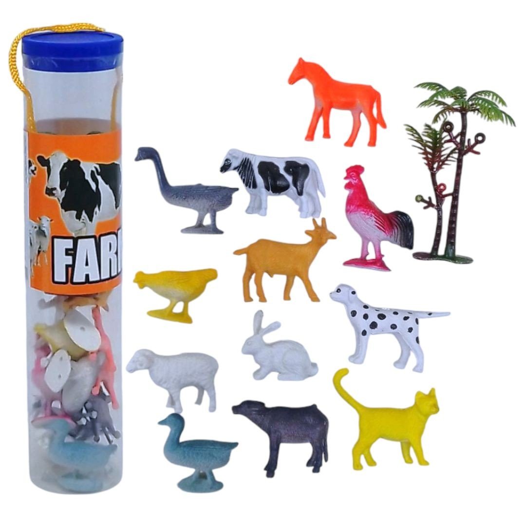 Набір із 12 фігурок тварин, виконаних із щільної гуми, з декоративним деревом у комплекті. Фігурки мають невеликий розмір та ідеально підходять для декорування або гри. Відмінний додаток до інтерʼєру або ігрового куточка. Розмір – 4-5 см. У прозорій колбі.