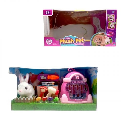 Улюбленець “Кролик”, на батарейках, звук, рух лапками, головою і хвостиком, переноска, мисочки, фен,