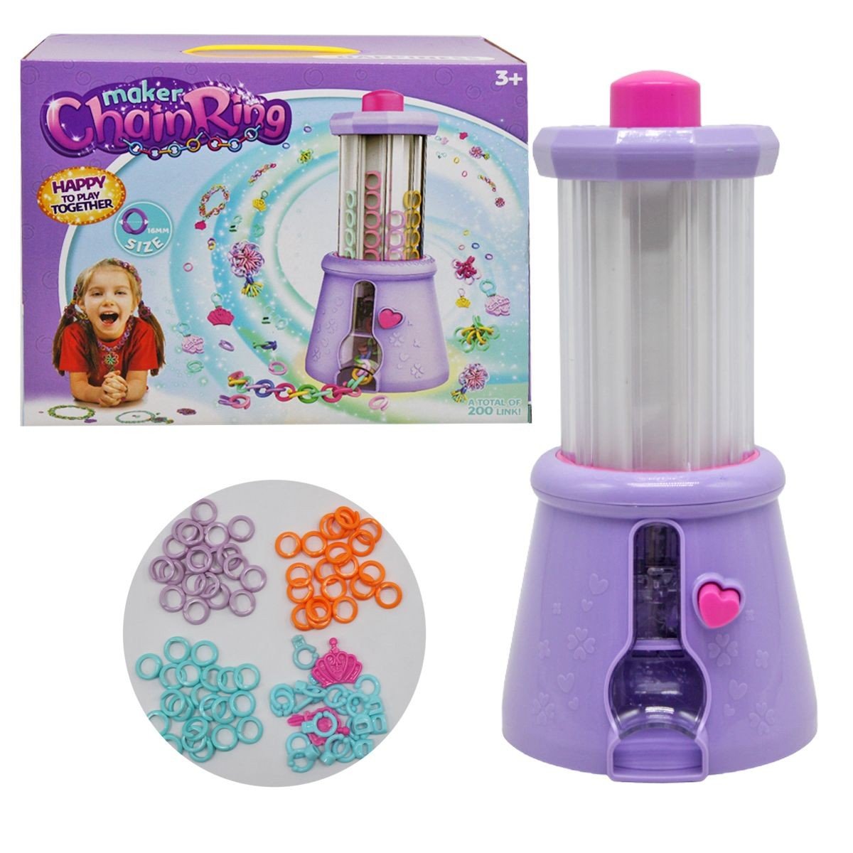 Оригінальний подарунок для дитини – установка для плетіння. За допомогою такого набору можна створювати унікальні прикраси, такі як: браслети, намисто, каблучки та багато іншого. У комплекті є 10 пакетиків із кільцями для плетіння різних кольорів (по 20 шт), встановлення, інструкція та комплектуючі для створення прикрас. Установка працює за допомогою двох кнопок - одна дозволяє вибрати необхідний колір кільця, друга з'єднує їх між собою. Для дітей віком від 3-х років.