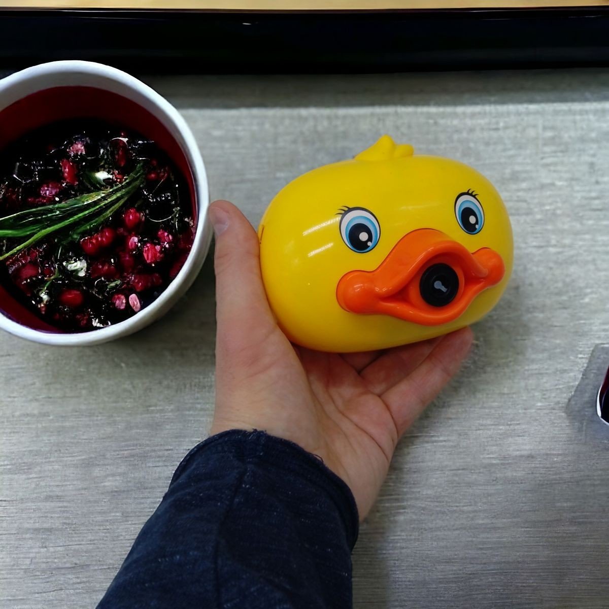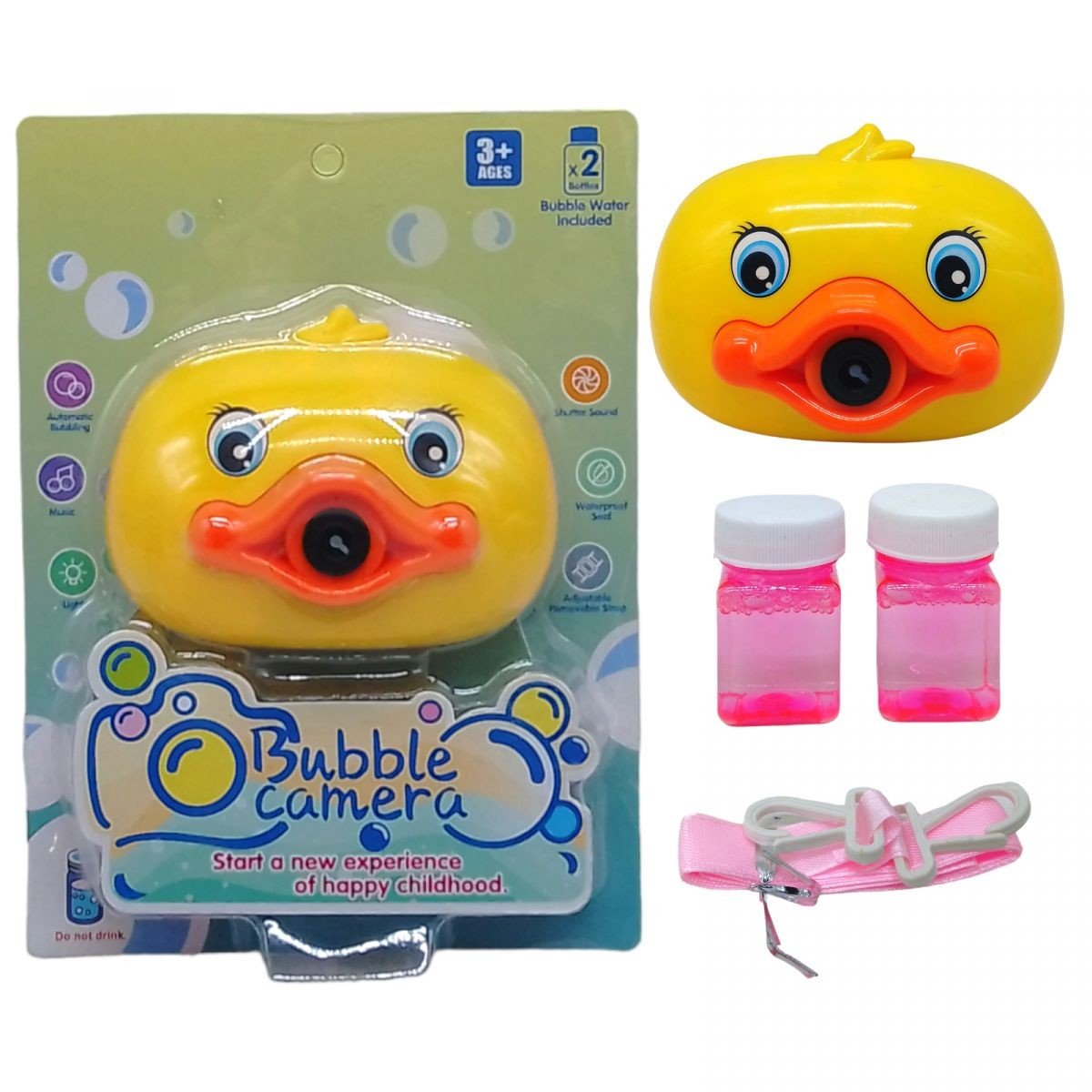 Набір для пускання мильних бульбашок із запускалкою у вигляді кумедної камери. У комплекті є пляшечка із мильним розчином, яку потрібно вставити в іграшку. Після включення іграшка почне пускати велику кількість мильних бульбашок. Є звукові ефекти. Іграшка працює від 3-х батарейок АА.