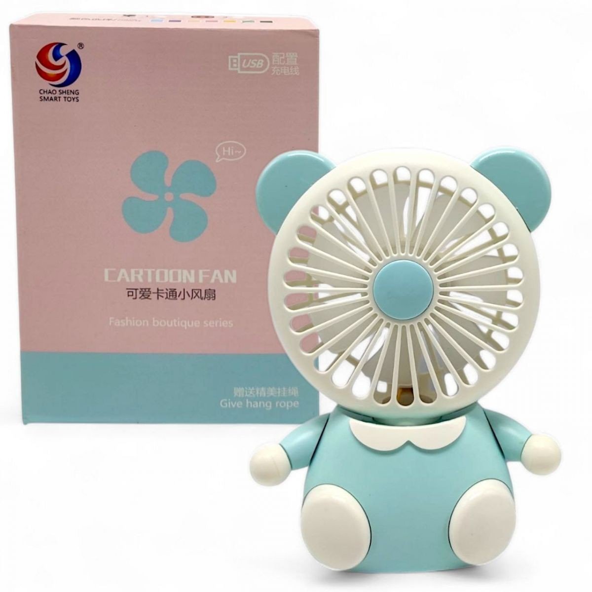 Вентилятор який врятує вас від спеки. Має один рівень потужності та працює понад 6 годин. Дизайн у вигляді ведмедика, в серії присутні різні забарвлення. Розмір вентилятора - 14,5 см. Виготовлений з полімерних матеріалів. Рекомендовано для діток старше 3-х років.