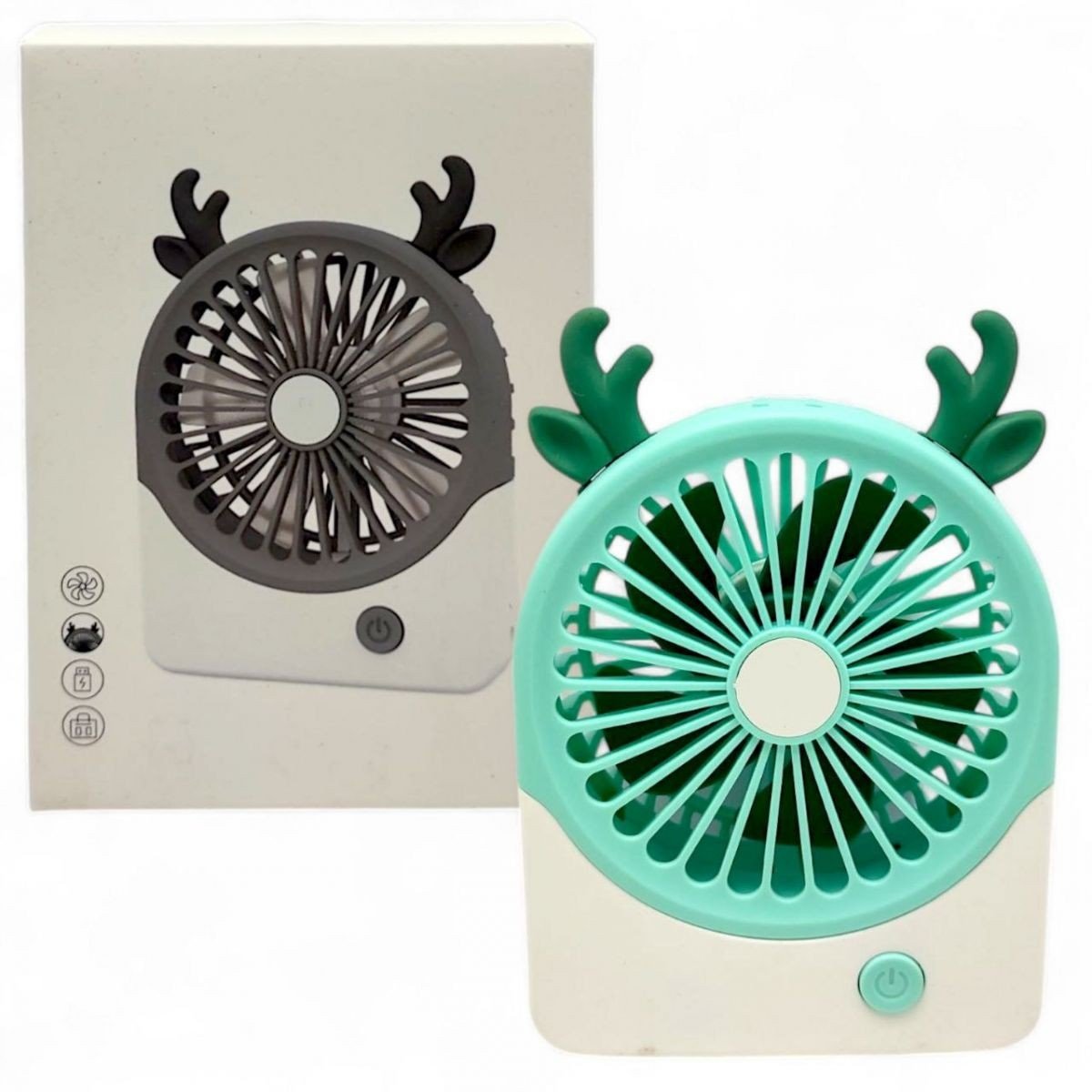 Вентилятор який врятує вас від спеки. Має два рівня потужності та працює понад 6 годин. Дизайн у вигляді оленя, в серії присутні різні забарвлення. Розмір вентилятора - 14 см. Виготовлений з полімерних матеріалів. Рекомендовано для діток старше 3-х років.