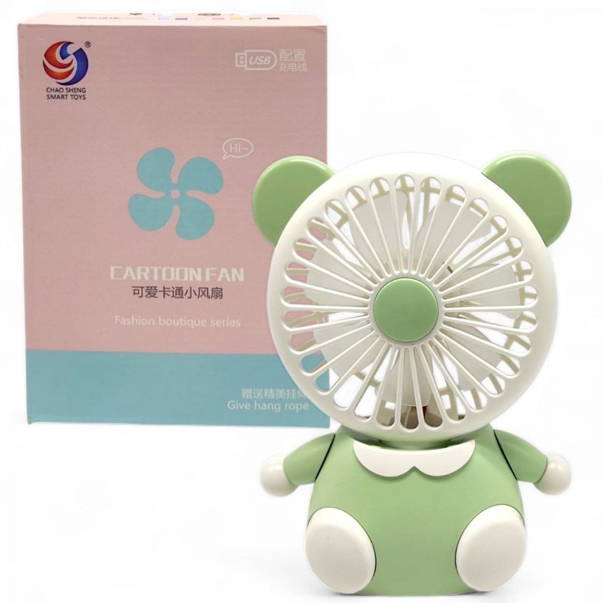 Вентилятор який врятує вас від спеки. Має один рівень потужності та працює понад 6 годин. Дизайн у вигляді ведмедика, в серії присутні різні забарвлення. Розмір вентилятора - 14,5 см. Виготовлений з полімерних матеріалів. Рекомендовано для діток старше 3-х років.