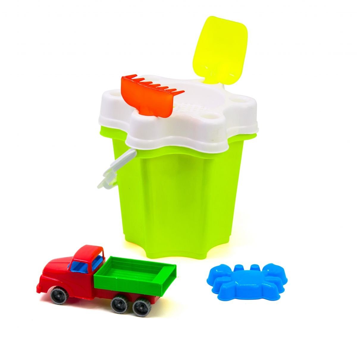 Опис Відро "Квіточка" з машинкою і пісочним набором (салатовое)