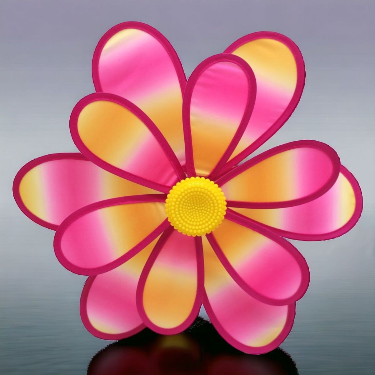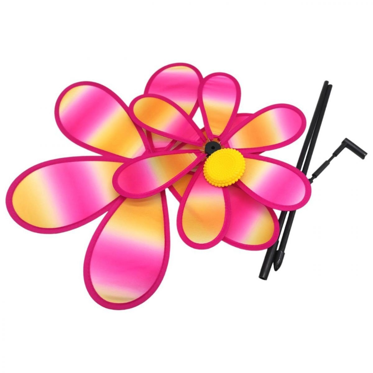 Яскрава іграшка-вітрячок. Іграшка складається з 2-х основ у вигляді текстильної квіточки-вертушки (28 см., та 38 см.) та палички, на яку все це кріпиться. При подиху вітру - вертушка швидко крутитиметься навколо серединки. Висота з кріпленням - 89 см. Виконано з якісних та міцних матеріалів.