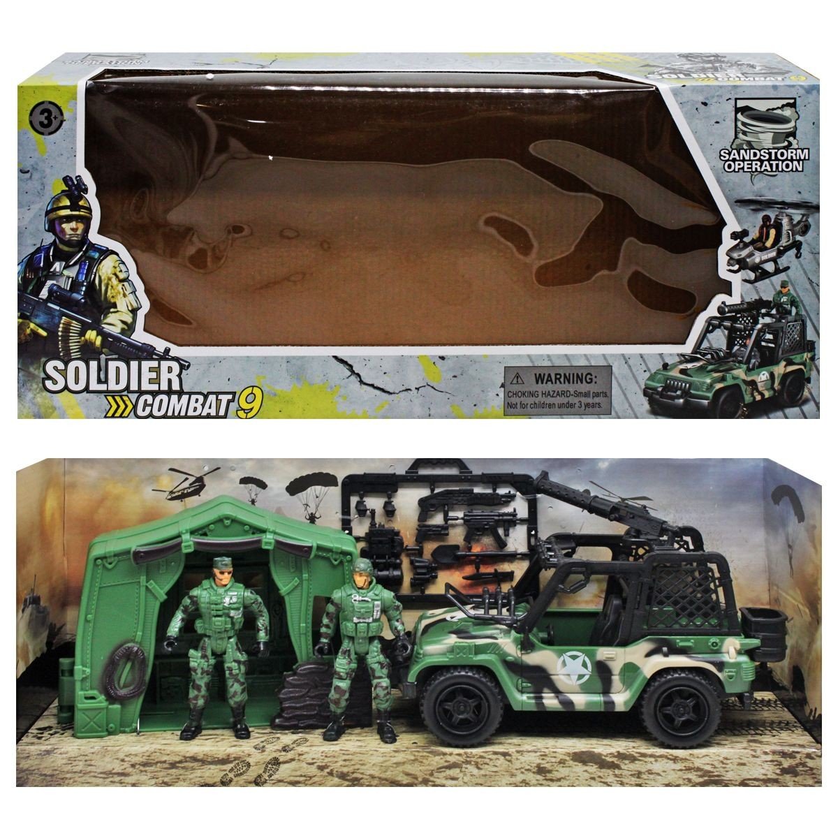 Опис Військовий набір "Soldier Combat 9", машина, солдатик, палатка
