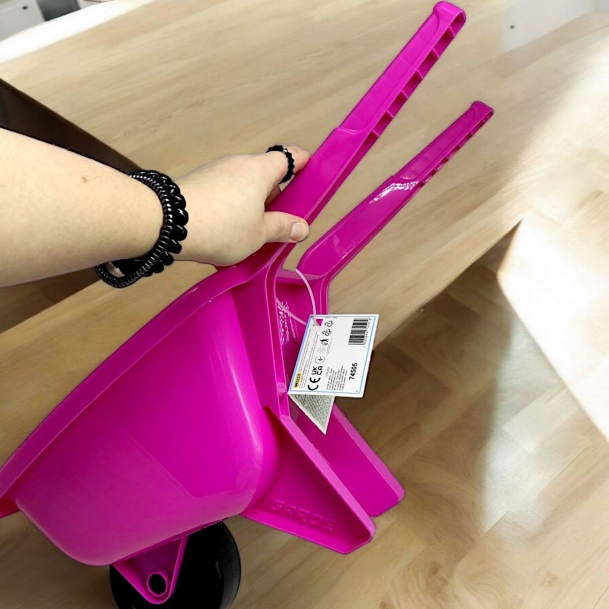 Дитяча тачка - чудове рішення для ігор на свіжому повітрі! Підходить для перевезення піску, іграшок та інших дрібниць. Виготовлена із міцного пластику, має зручні ручки та стійку конструкцію. Довжина виробу - 54 см, пластикове колесо діаметром 11 см забезпечує легкість пересування. Ідеальна для дачі, пляжу чи пісочниці.
