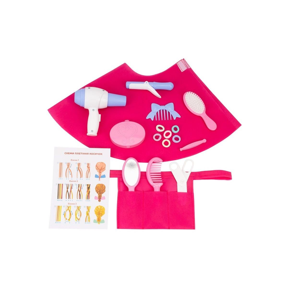 Комплектація: Візок, саквояж, фен, плойка, гребінець, щітка, люстерко, 2 шпильки гребінець, пудрениця, пінцет, ножиці, накидка, пояс, 6 гумок для волосся, інструкція для заплітання