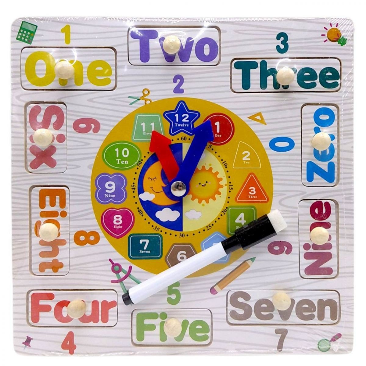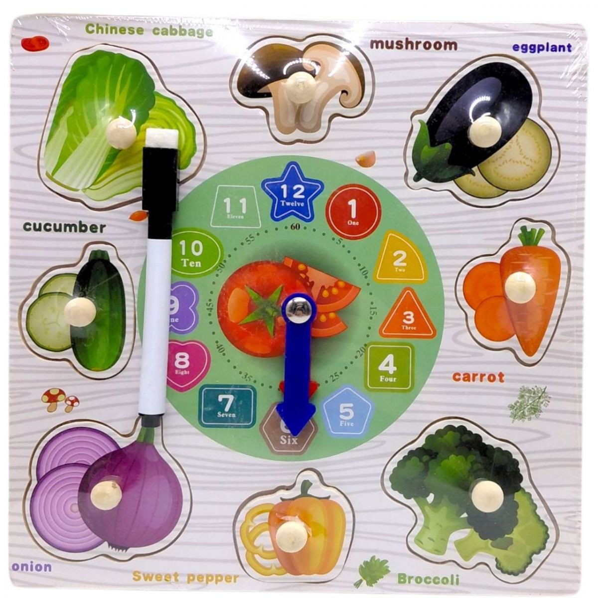 Опис Вкладиші дерев’яні (годинник, дошка для малювання, маркер “пиши-стирай”) мікс видів