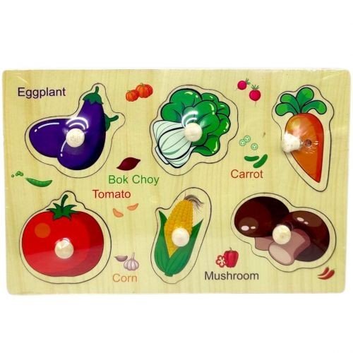 Набір вкладок з різноманітними овочами — захоплива гра, головна ціль якої — розставити вкладиші згідно з їхньою формою. Допомагає розвивати логіку у дитини шляхом вкладання деталей відповідно до їхньої форми та краще вивчити овочі. У наборі присутні різноманітні деталі. Виготовлені з дерева та пластику. Рекомендовано для діток від 3 років.