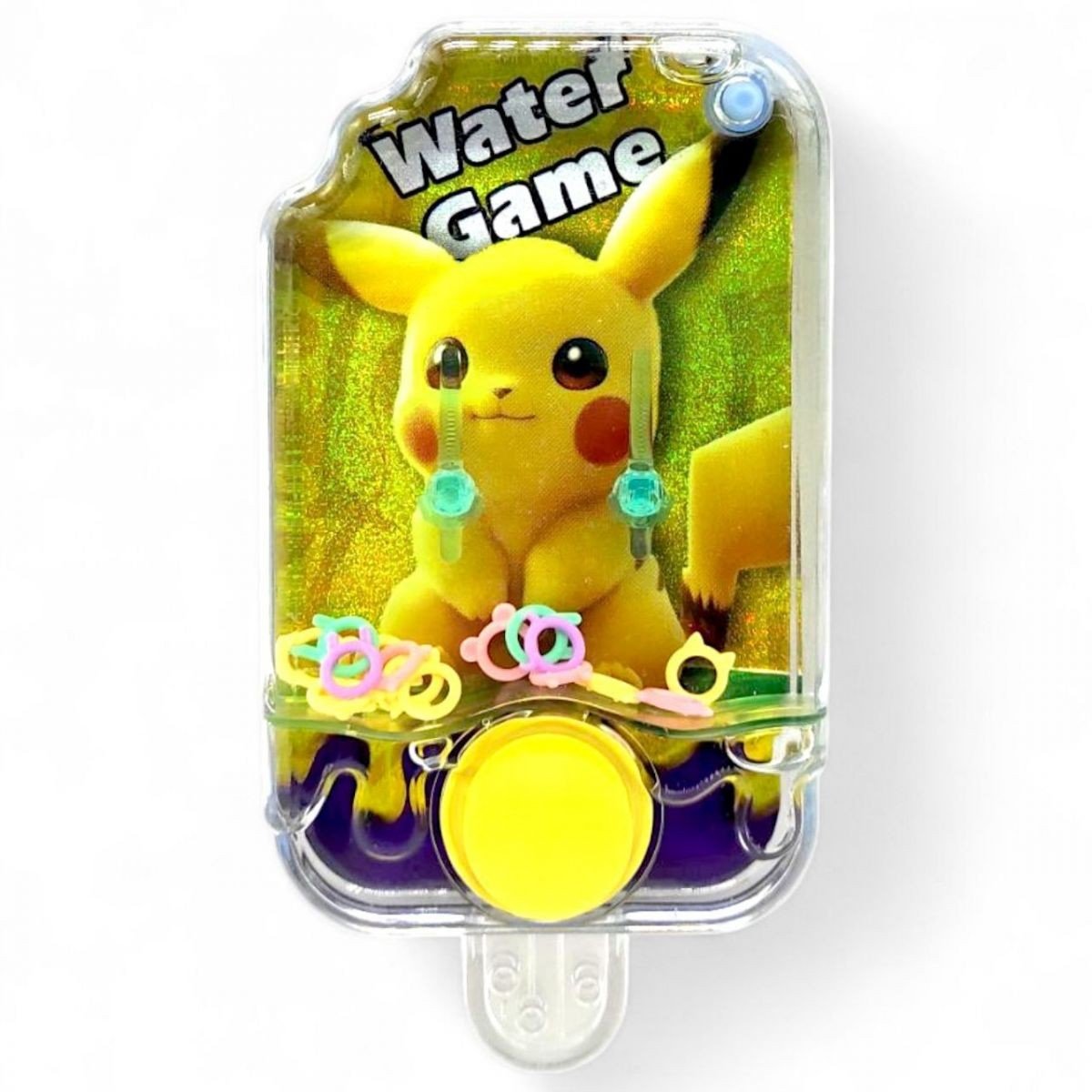Водна гра в кільця (або з кульками) з яскравим малюнком на задній панелі. Стильний, привабливий дизайн. Усередині іграшки знаходиться вода, в якій плавають кільця/кульки. Суть гри: за допомогою кнопки необхідно закинути усі кільця на стовпчики/закинути кульки в жолобки. Виконані із міцного пластику, кнопка гумова.