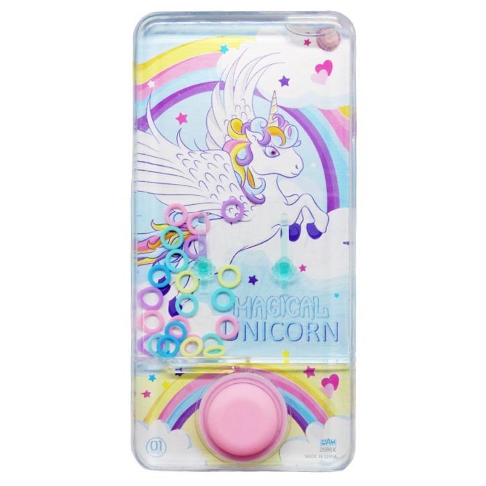 Водна гра в колечка з однією кнопкою. Яскравий, цікавий дизайн. Усередині іграшки знаходиться вода в якій плавають колечка. Суть гри: за допомогою кнопок необхідно закинути все кільця на стовпчики. Різні види в асортименті.