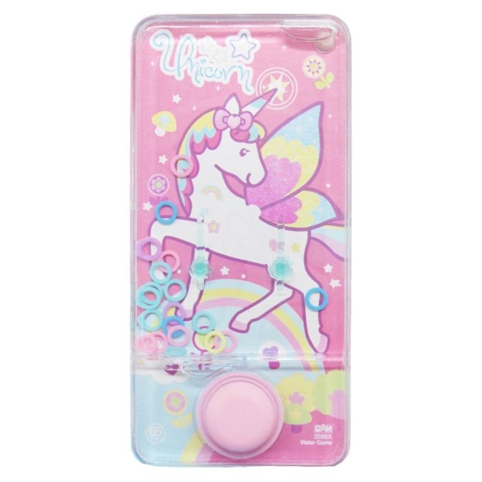 Водна гра в колечка з однією кнопкою. Яскравий, цікавий дизайн. Усередині іграшки знаходиться вода в якій плавають колечка. Суть гри: за допомогою кнопок необхідно закинути все кільця на стовпчики. Різні види в асортименті.