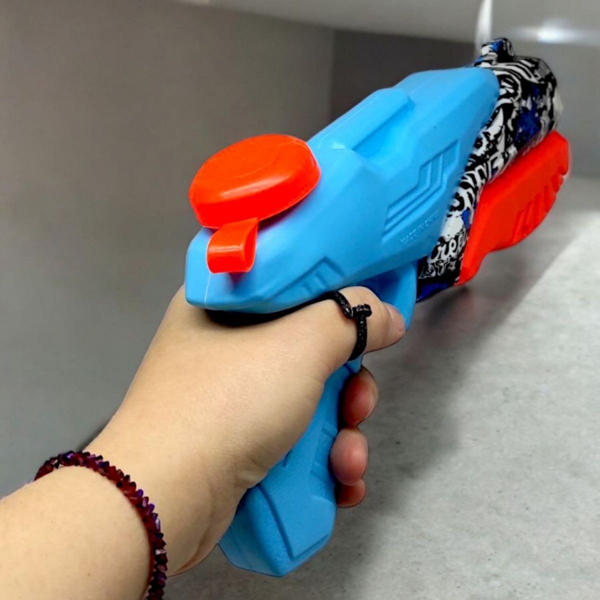 Водний бластер з накачуванням (помповий) - чудова іграшка для літніх водних баталій! Завдяки помповій системі, пістолет створює потужний струмінь води, забезпечуючи далекобійність та цікаву гру. Зручний розмір (28 см) підходить як для дітей, так і для дорослих.