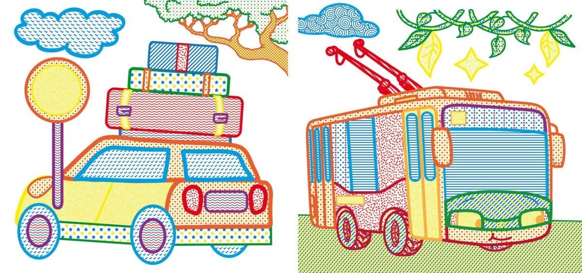 Опис Водні розмальовки з кольоровим контуром "Міський транспорт" (укр)