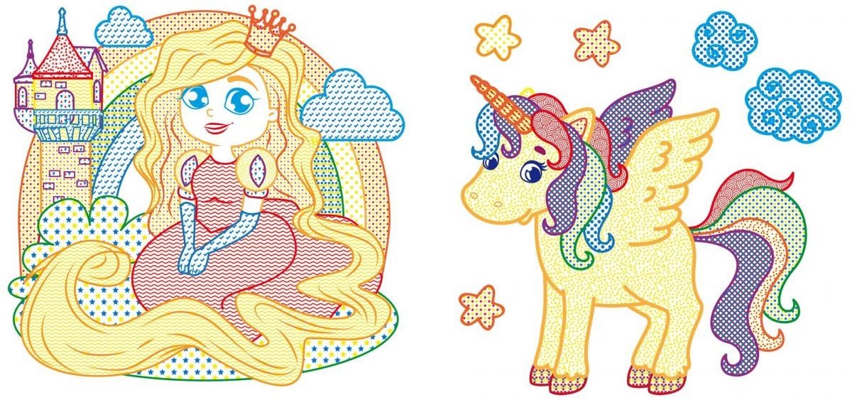 Опис Водні розмальовки з кольоровим контуром "Принцеса і її друзі" (укр)