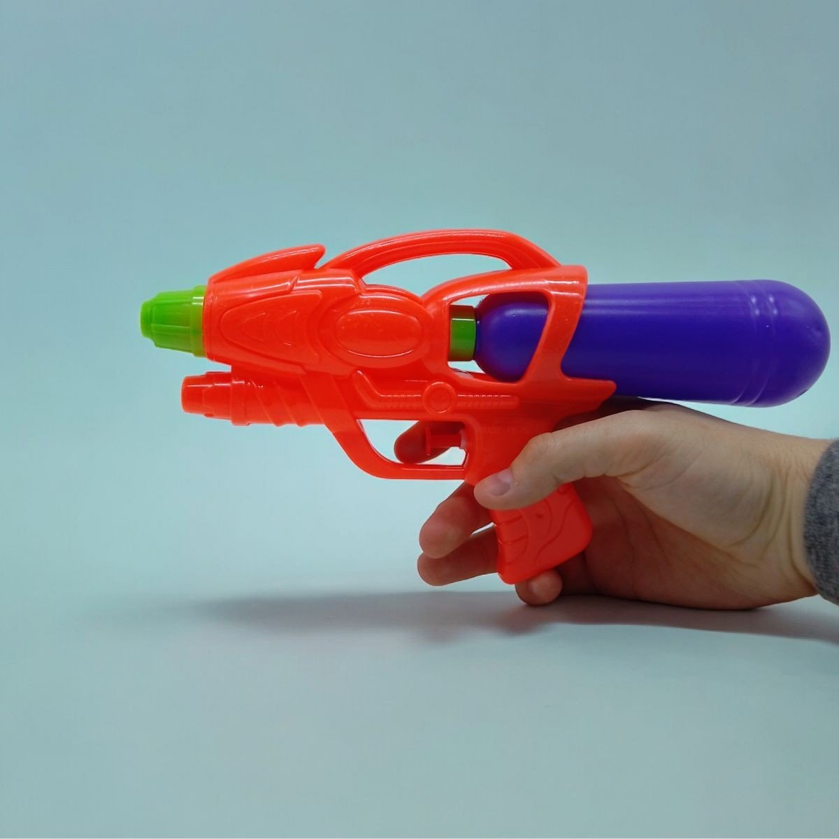 Водний пістолет із резервуаром на 0,25 літра для активних водних ігор. Легко наповнюється водою та забезпечує потужний постріл струменем. Ідеально підходить для дітей та дорослих, щоб весело провести час на свіжому повітрі. Розмір – 26,5 см. Різні кольори в асортименті.