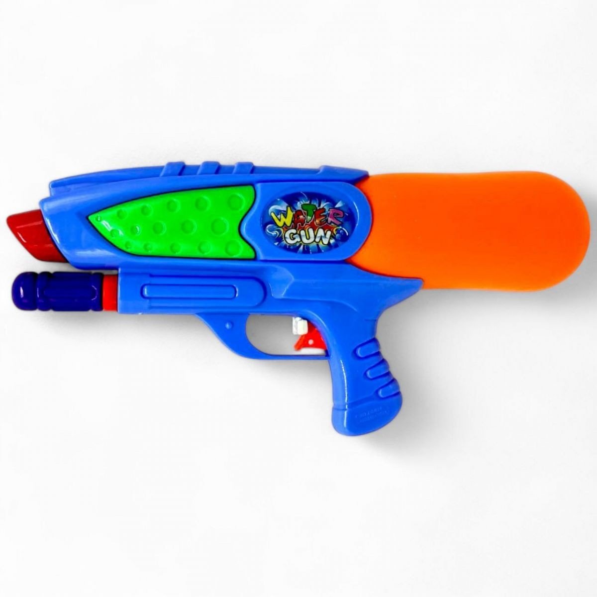 Водний бластер з накачуванням (помповий) - чудова іграшка для літніх водних баталій! Завдяки помповій системі, пістолет створює потужний струмінь води, забезпечуючи далекобійність та цікаву гру. Зручний розмір (33 см) підходить як для дітей, так і для дорослих. Резервуар прикручується до корпусу.