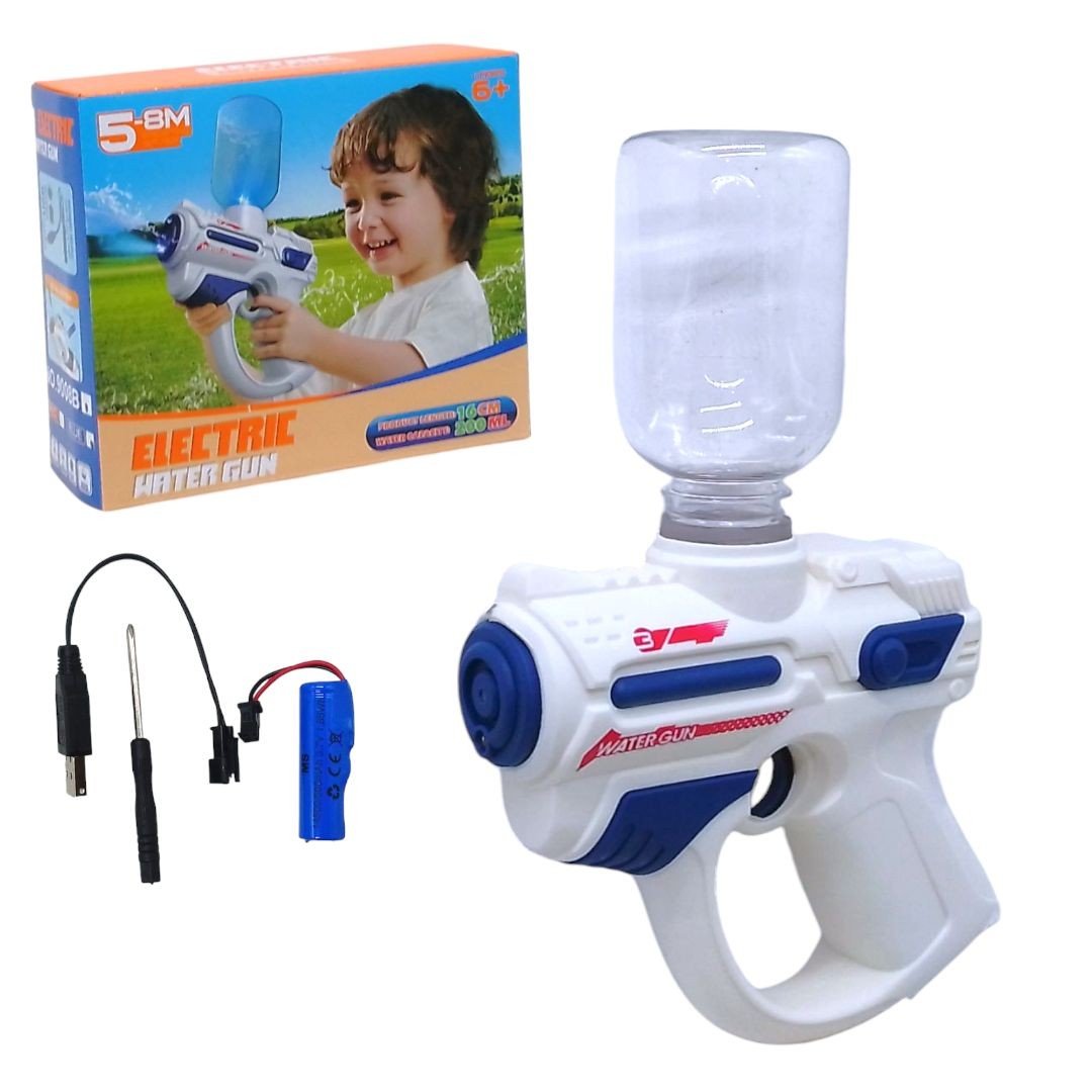 Іграшковий водний пістолет з акумулятором - ідеальна розвага для спекотних днів! Оснащений знімним резервуаром обʼємом 200 мл, який зручно прикручується до корпусу. Розмір зброї - 16 см. Завдяки потужному насосу дальність струменя сягає 8 метрів. Легкий, зручний у використанні і не вимагає постійного підкачування - просто зарядіть акумулятор і вперед до водних баталій!