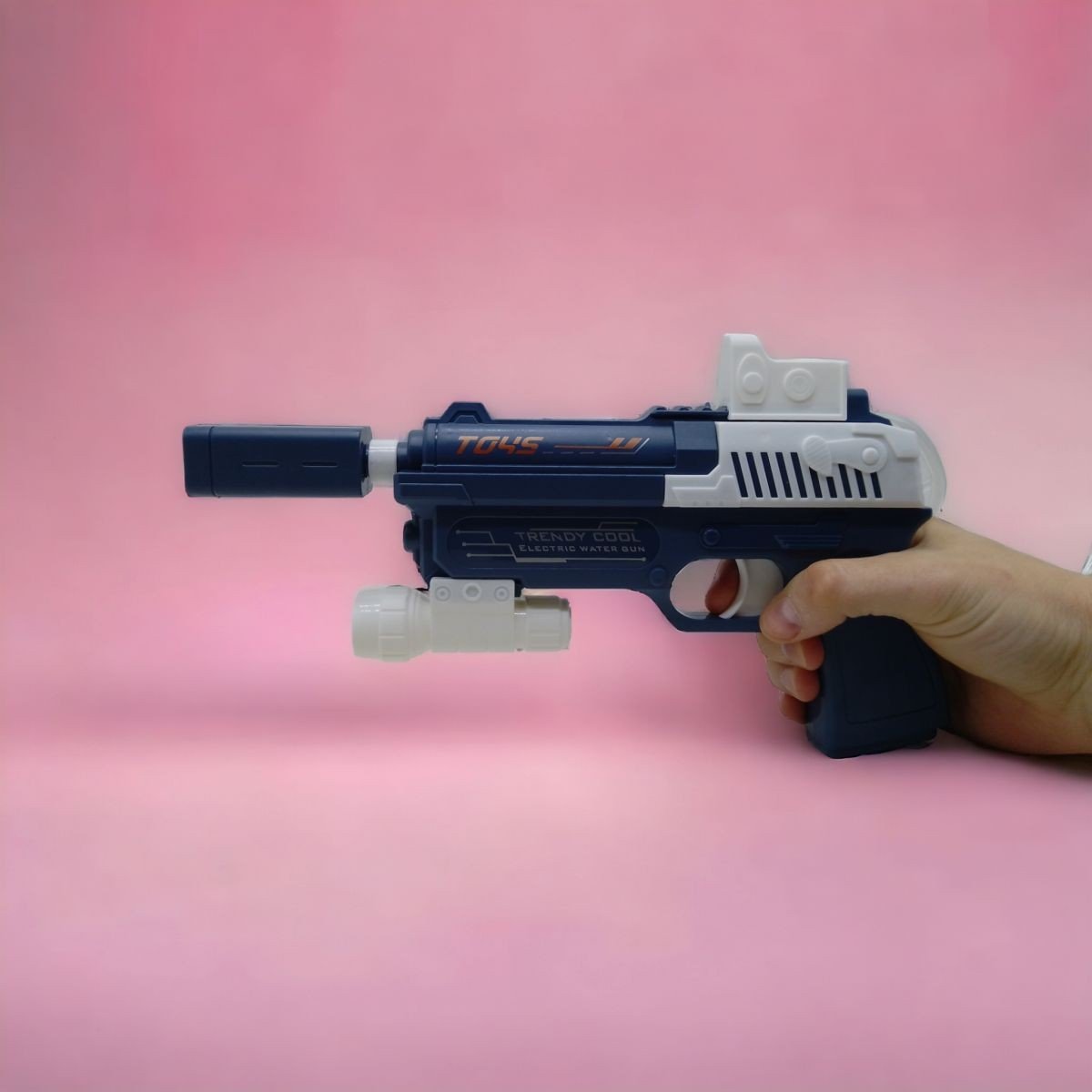Електричний водяний пістолет оснащений унікальним балоном у формі бінокля, який надає йому оригінального та стильного вигляду. Балон зʼєднаний з бластером спеціальною трубкою, що забезпечує постійне надходження води. Сам балон на шнурку. Такий дизайн робить пістолет зручним у використанні та дозволяє стріляти водою без необхідності постійного перезаряджання. Ідеально підходить для водних баталій та активного відпочинку на свіжому повітрі. Працює від 4-х батарейок АА (немає в комплекті).