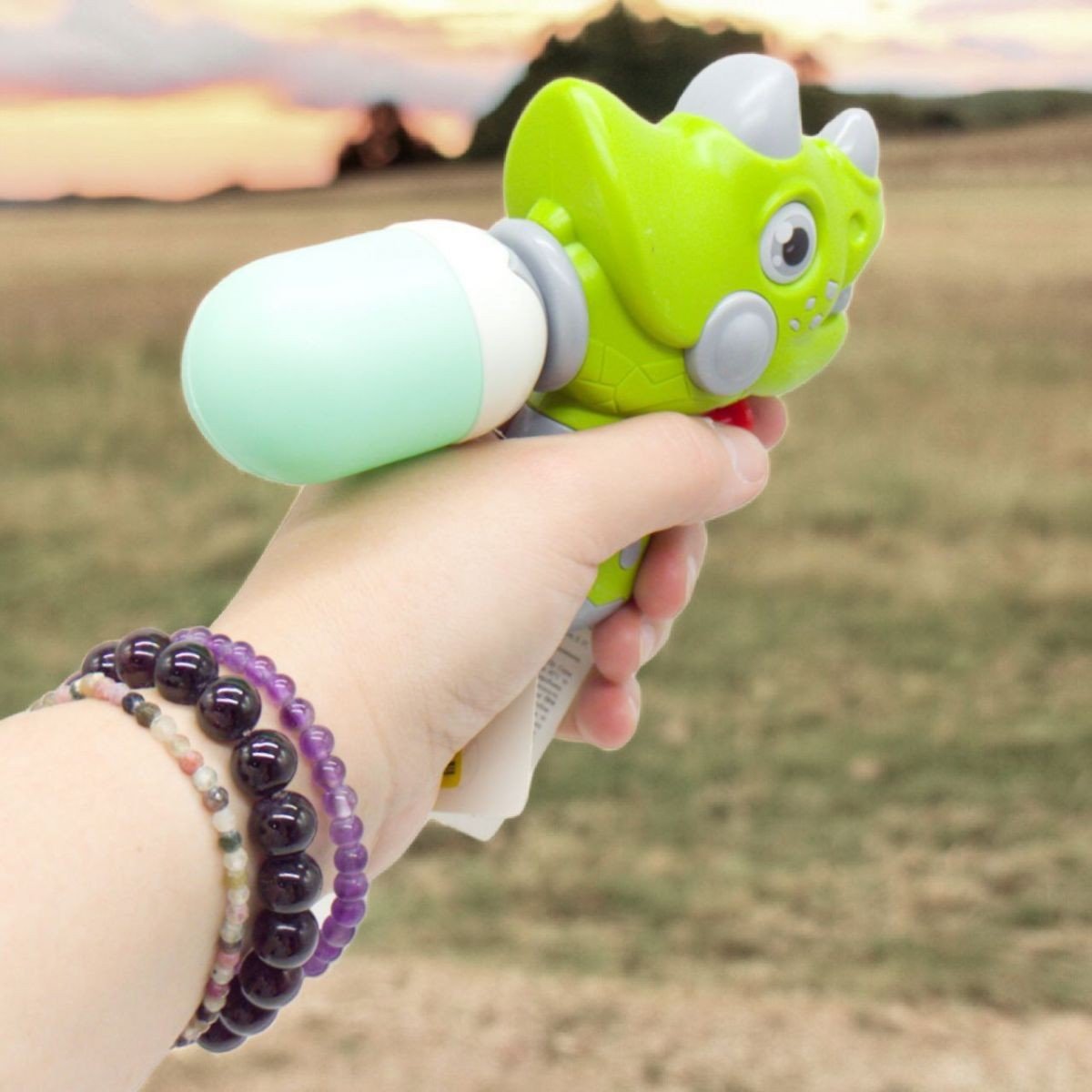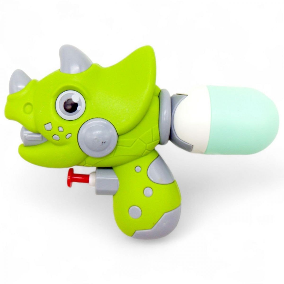 Маленький водний пістолет є компактною дитячою зброєю для гри у водні баталії. Виконаний у вигляді мультяшного динозаврика. Він має зручну форму для хвату та легку вагу, що робить його ідеальним для дітей. Для використання достатньо залити воду в пляшечку-резервуар, після чого він готовий до екшену. Розмір іграшки - 15,5х11х4 см.