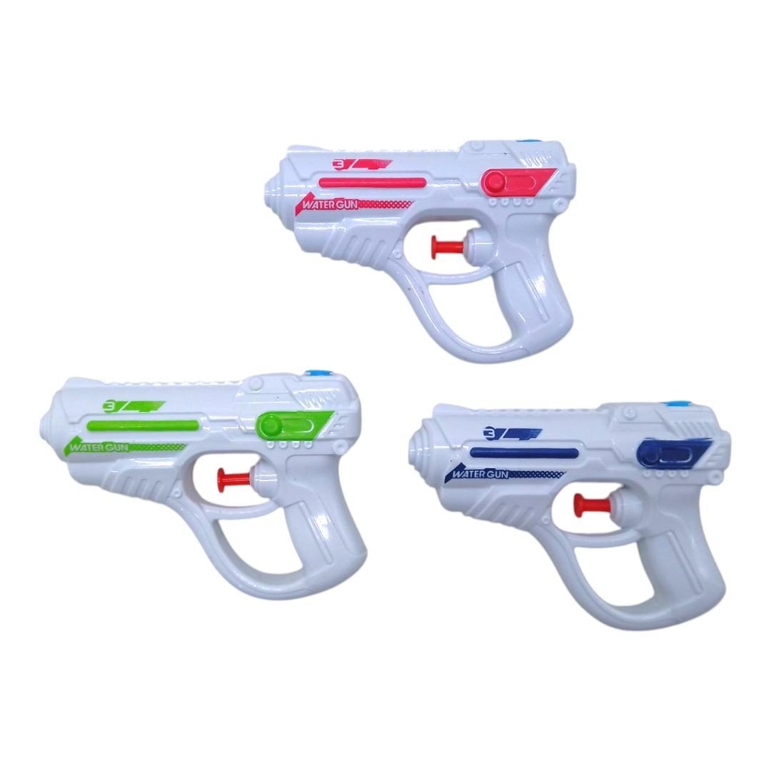 Прозорий водний пістолет довжиною 13 см. Він ідеально підходить для активних ігор на свіжому повітрі. Завдяки компактному розміру та легкій вазі його зручно тримати в руках навіть найменшим дітям. Вода заливається прямо у сам пістолет (є отвір збоку). Виготовлено з якісного та легкого пластику. Рекомендовано для дітей старше 3 років.