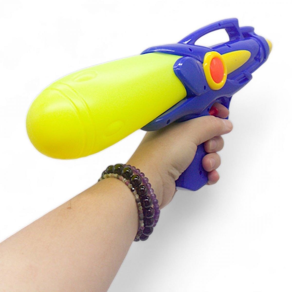 Водний пістолет є чудовою дитячою зброєю для гри у водні баталії. Виконаний у вигляді космічного бластера. Він має зручну форму для хвату та легку вагу, що робить його ідеальним для дітей. Для використання достатньо залити воду в резервуар, після чого він готовий до екшену. Розмір іграшки - 37х14х6,5 см.