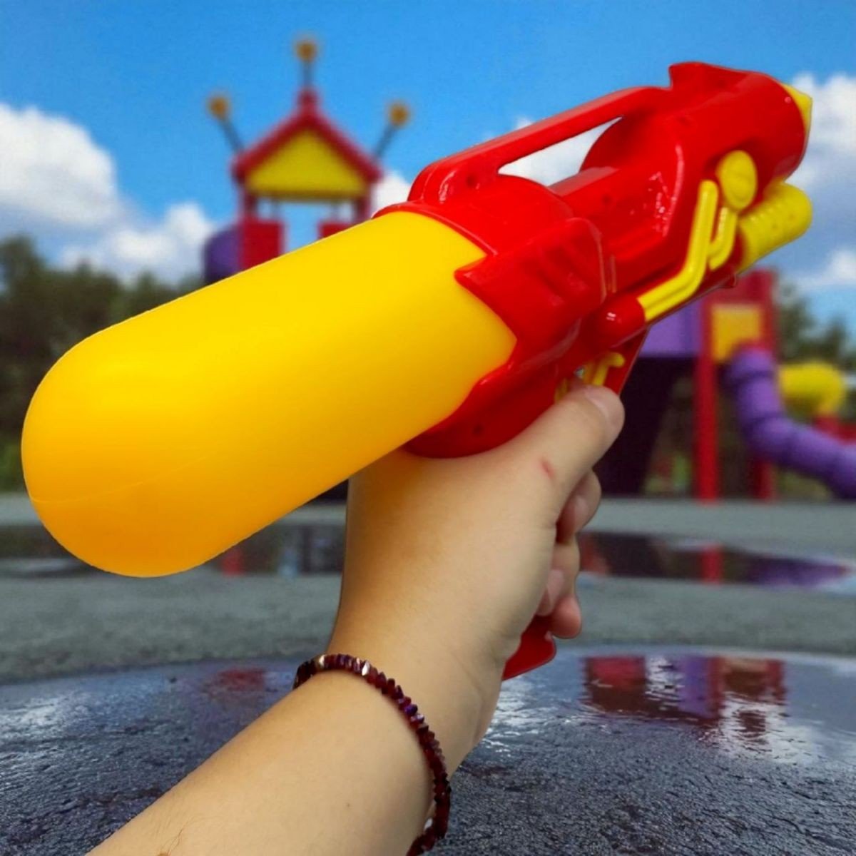 Водяна зброя, щоб намочити кожного хто стане на твоєму шляху! - але краще не попадати в обличчя. В серії присутні різні забарвлення. Іграшка з накачкою, тож працює по принципу насоса, накачуючи тиск. Розмір пістолета - 32х17 см. Виготовлений з легкого пластику. Рекомендовано для діток від 4 років.