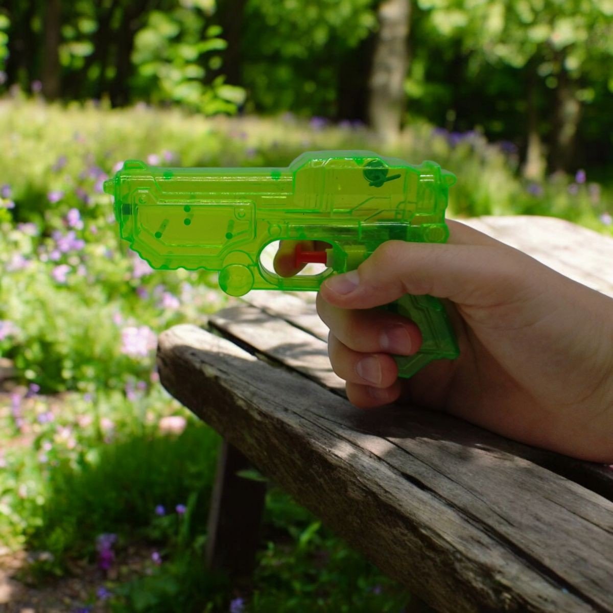 Прозорий водний пістолет довжиною 15 см. Він ідеально підходить для активних ігор на свіжому повітрі. Завдяки компактному розміру та легкій вазі його зручно тримати в руках навіть найменшим дітям. Вода заливається прямо у сам пістолет (є отвір збоку).