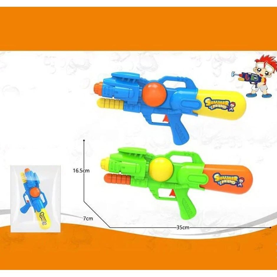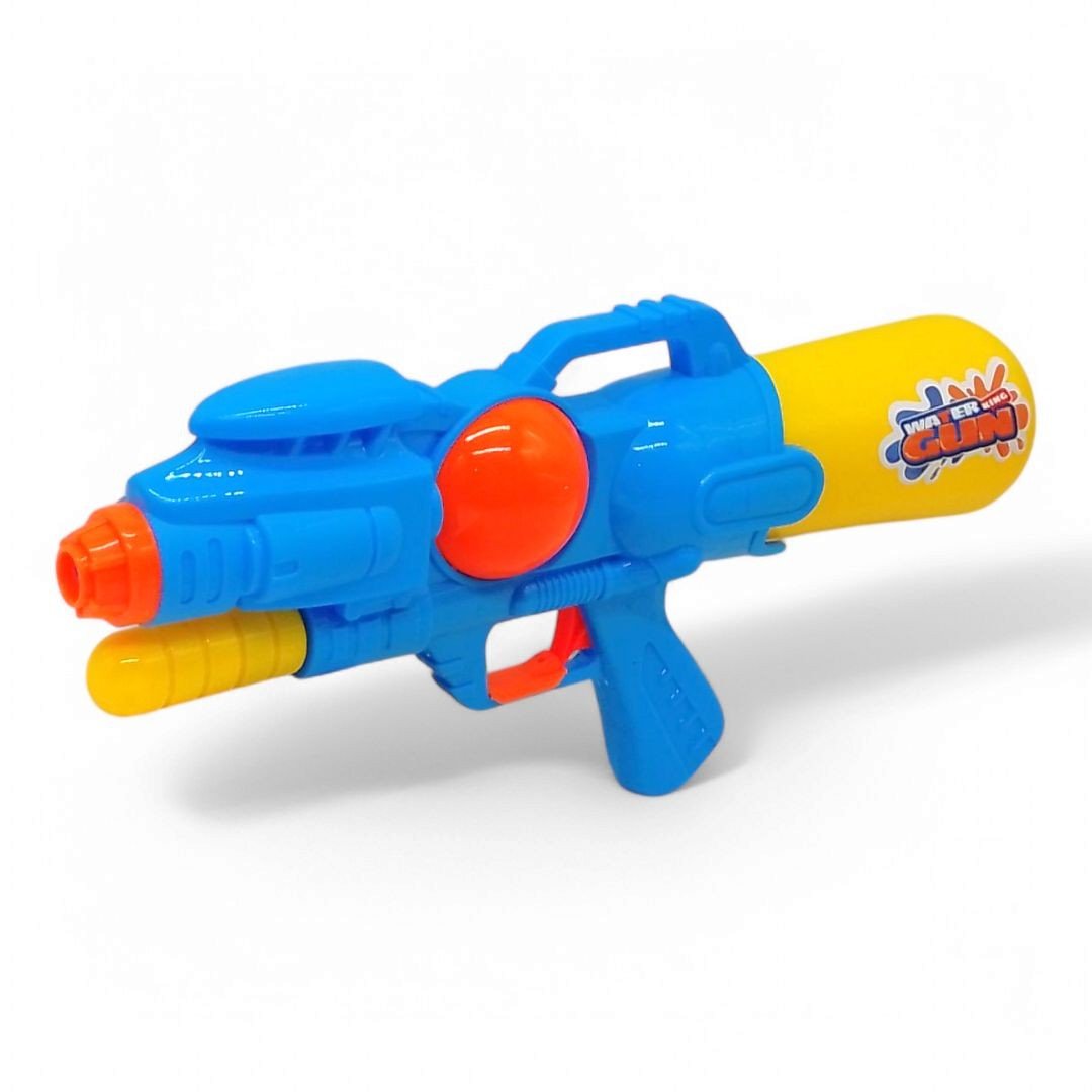 Водна зброя з накачуванням - це іграшковий пістолет, призначений для стрільби струменем води. Для створення тиску та пострілу, у зброї передбачена система накачування. Треба вручну нагнітати повітря в резервуар, після чого вода випускається під тиском, створюючи потужний і далекобійний струмінь. Ця зброя ідеально підходить для активних ігор на свіжому повітрі та гарантує масу веселощів. Розмір - 35 см.