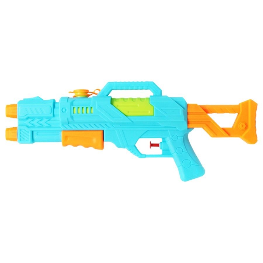 Водяна зброя в яскравому дизайні. Вода заливається у спеціальний резервуар. Використовується у дружніх іграх під час літніх жарких. Цей вид активності популярний серед дітей та дорослих, і він чудово підходить для розваг на пляжі, у дворі або в парку. Розмір пістолета – 36,5 см.