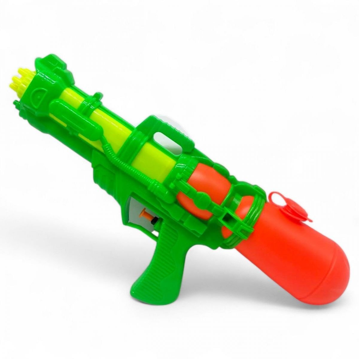 Водяна зброя, щоб намочити кожного хто стане на твоєму шляху! - але краще не попадати в обличчя. В серії присутні різні забарвлення. Має затичку, щоб зручно набирати воду. Розмір пістолета - 37 х 17 см. Виготовлений з легкого пластику. Рекомендовано для діток від 4 років.