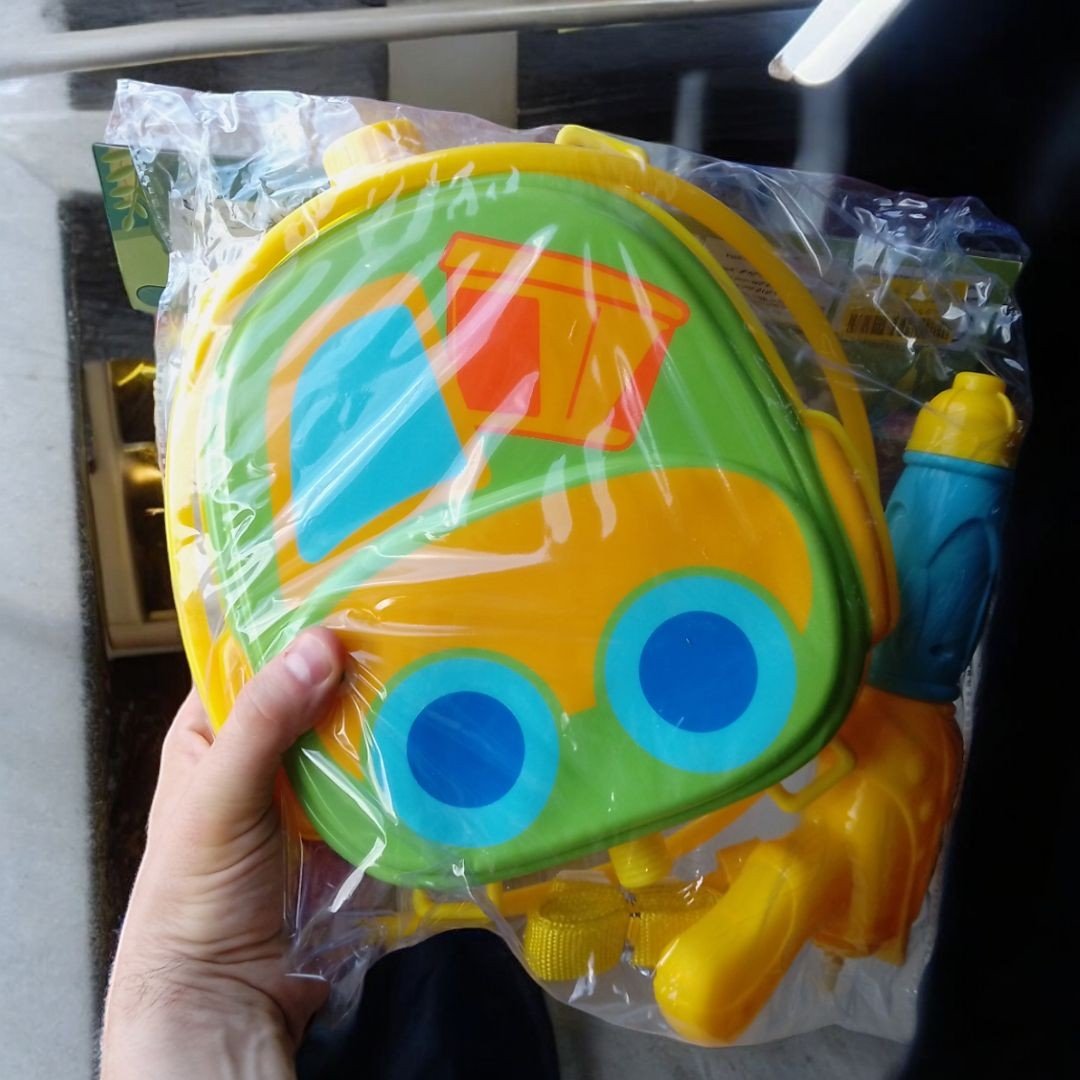 Дитячий набір для стрільби з водяного пістолета-насоса з балоном. Балон виконаний у вигляді будівельної машини. За допомогою лямок, які є в комплекті, його можна носити як рюкзачок. У комплекті є: водний пістолет, балон, лямки та кріплення для трубки.