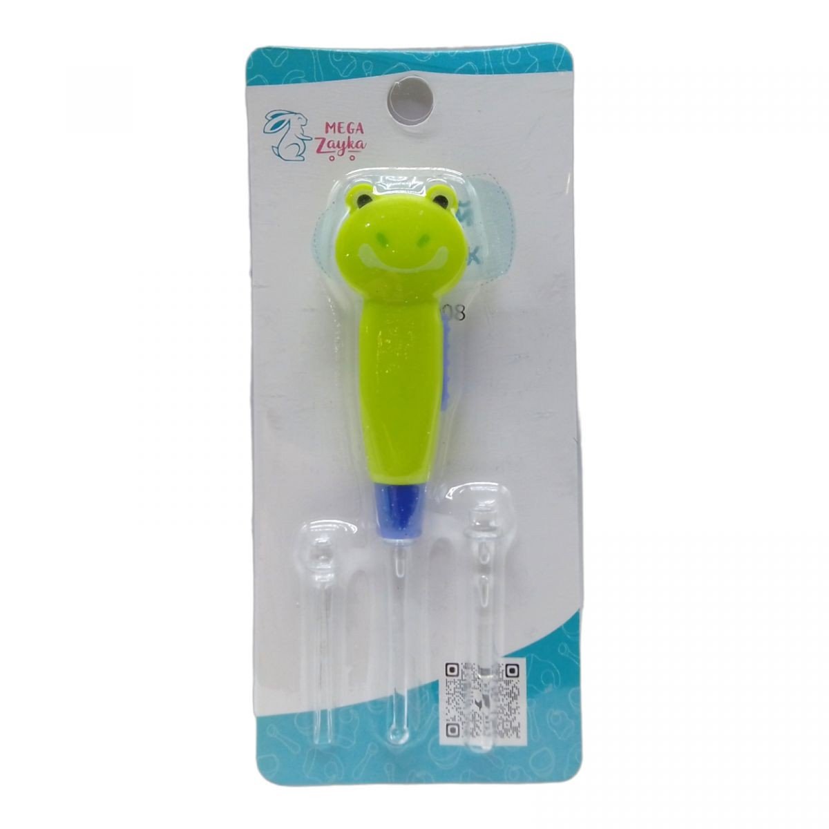 Бренд: Mega Zayka Упаковка: Планшет Колір: Зелений Вага з упаковкою: 15 г Габарити в упаковці: 1 x 14.5 x 6.5 см Габарити без упаковки: 1 x 10.5 x 2.5 см Країна виробник: Китай Матеріал: Комбінований Комплектація: Вушний ліхтарик, 2 насадки