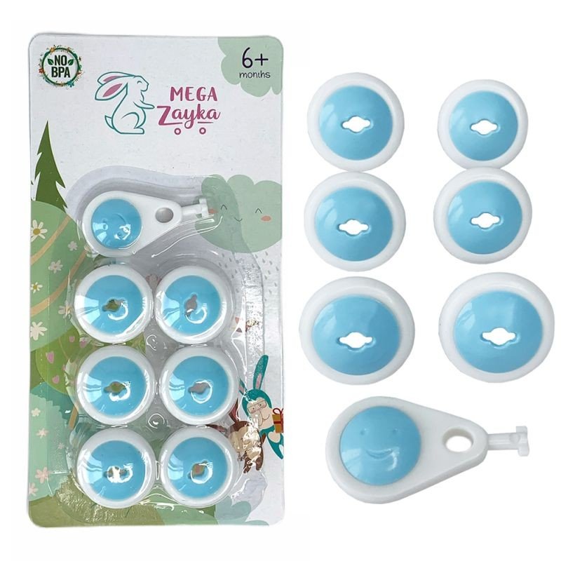 Упаковка: Планшет Колір: Білий, блакитний Вага з упаковкою: 40 г Габарити в упаковці: 21.5 x 11 x 2 см Країна виробник: Китай Матеріал: Пластик Комплектація: Заглушки в розетку (6 шт)