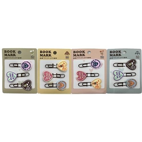 Закладка-скріпка для книг силіконова 3 шт."Сердечки" 6 см (мікс видів)
