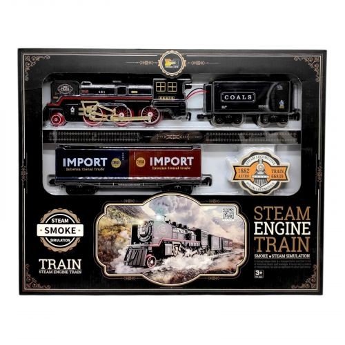 Опис Залізниця (локомотив, 2 вагони, звуки, підсвічування, парогенератор, в коробці)