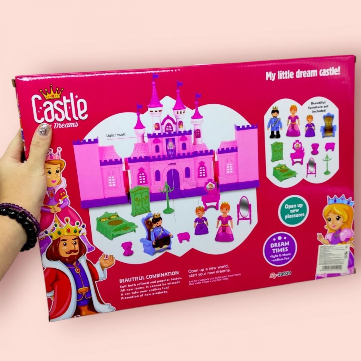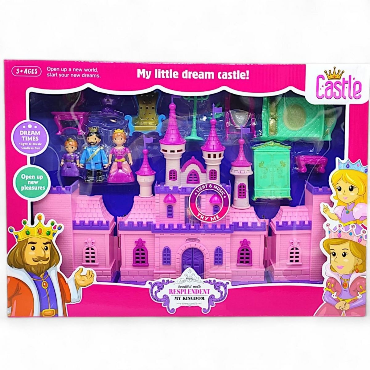 Опис Замок з ляльками-персонажами та меблями (музика, світло)